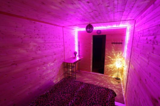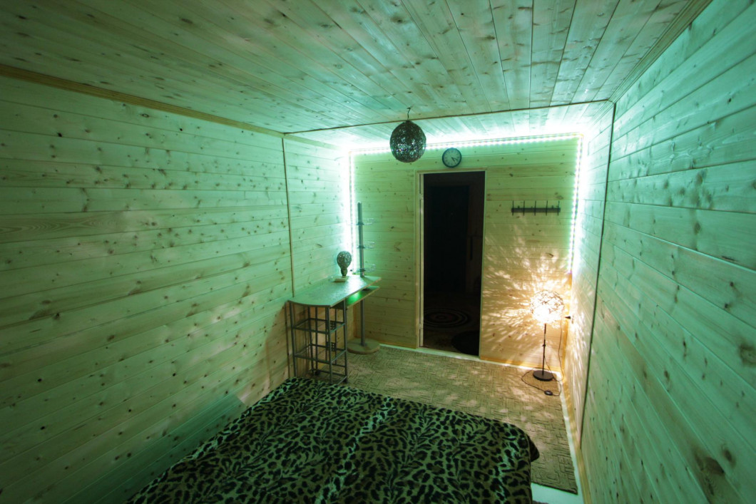 Есть отдельная комната в которой есть двухспальная кровать. Комната оснащена интимным светодиодным освещением, можете посмотреть сам номер на фотографиях. Так же банный комплекс не может быть без русской бани! Какая баня без русской бани скажете вы. Русская баня на дровах, не оставит равнодушным ваших друзей и подруг!