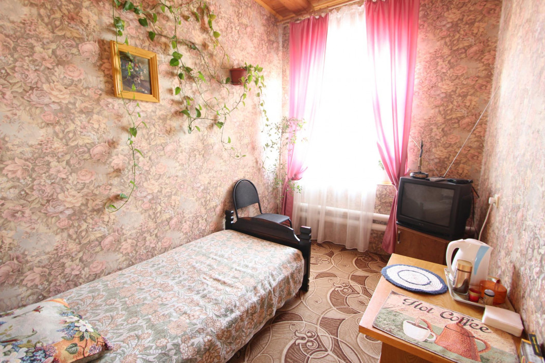 Номер 6 является изолированной комнатой по типу двухкомнатной квартиры, имеет одну одноместную кровать. В номер входит блок с душевой, санузел. Стоимость 800руб/сутки.